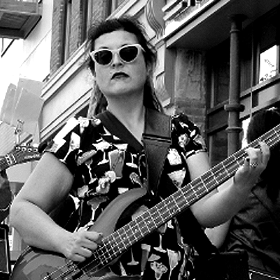 Sarah Metivier Schadt (electric bass) is a multi-instrumentalist and soprano who splits her time between Tilted Axes, the League of Guitarists, several church choirs, and the Berlin Guitar Ensemble. During the rare times she’s not traveling for workshops, rehearsals, and gigs, Sarah lives and gardens in far northern Illinois with her husband and two cats.