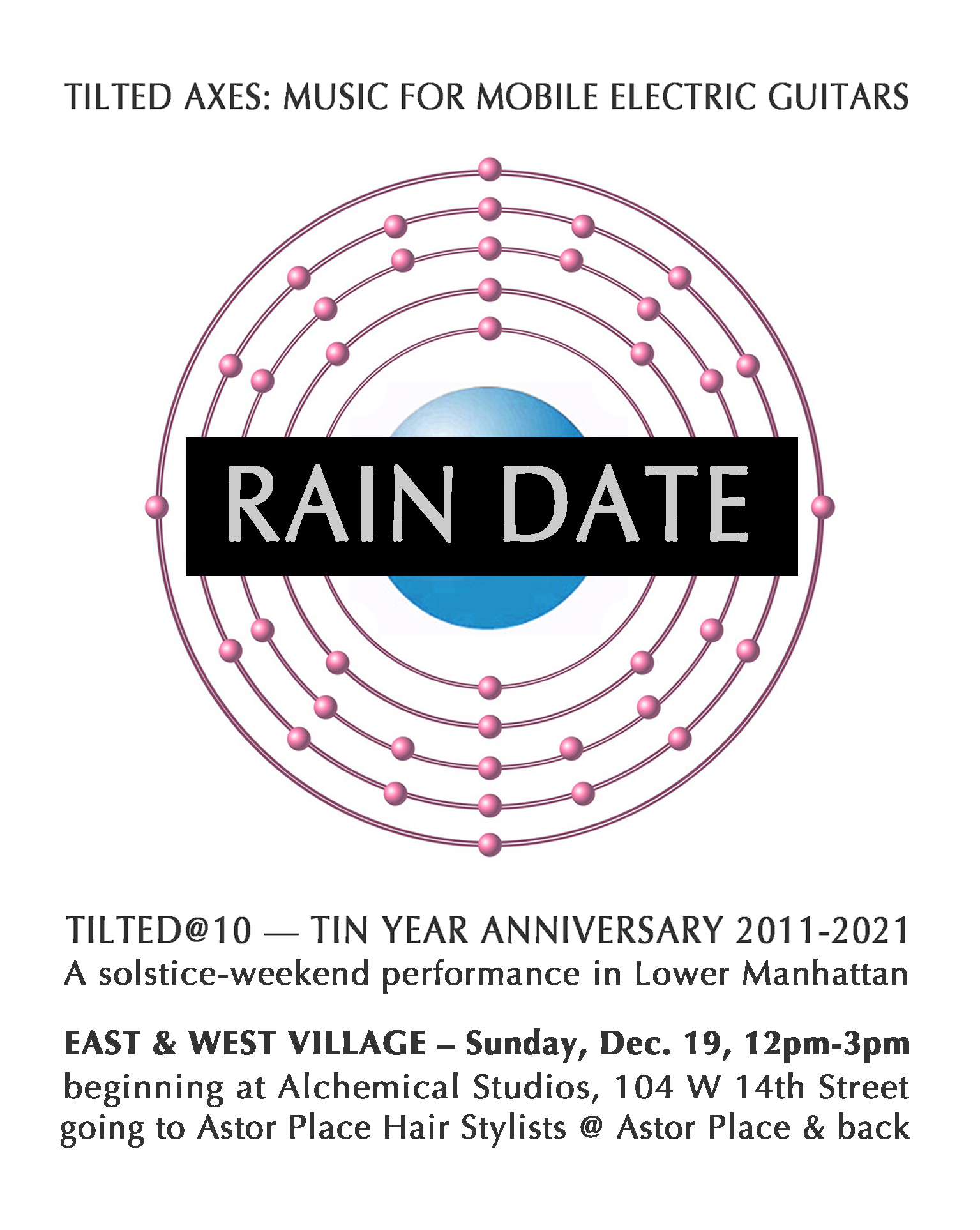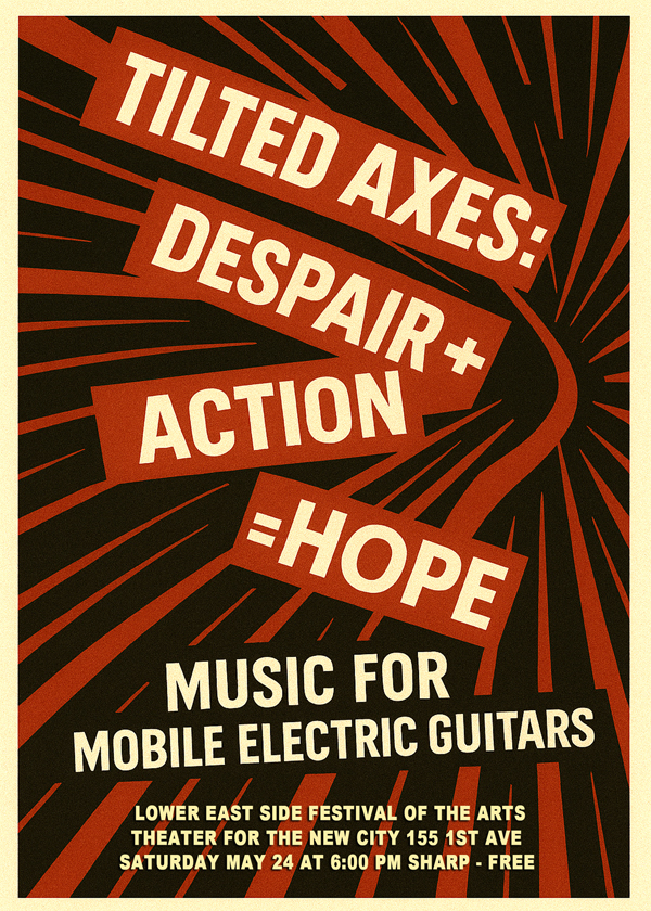 TILTED AXES: Music for Mobile Electric GuitarsCombining the energy of rock, the creative discipline of theater, and the experimental spirit of the downtown NYC arts scene, Tilted Axes is both a processional event, and an ensemble of mobile electric guitarists created by composer/performer Patrick Grant.