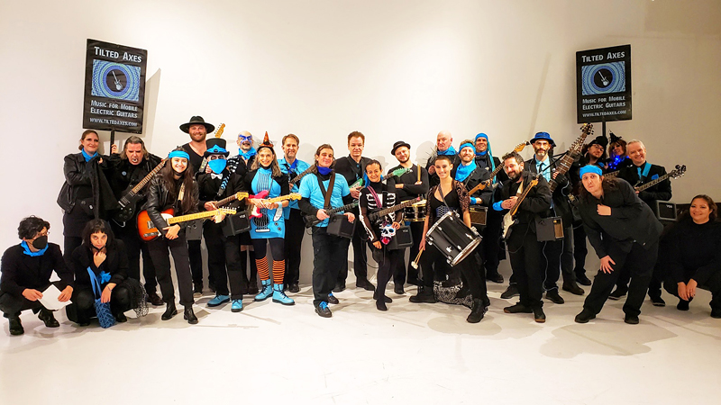 Tilted Axes: Music for Mobile Electric Guitars is an innovative performance ensemble that takes music off the stage and into unexpected places — streets, galleries, museums, and theaters. With amplified sound, choreography, and public engagement, Tilted Axes turns each performance into a unique, site-specific event.