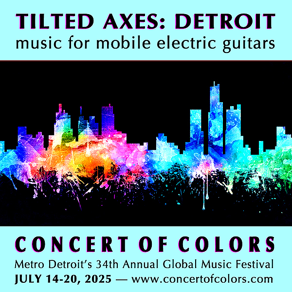 "...Tilted Axes? It's the brainchild of Detroit native and New York experimental composer Patrick Grant, a procession of electric guitars playing compositions in public places. Grant has brought the performance, which he's staged in Germany and New York, to Detroit's Cultural Center, and returned last year for the city's 313th birthday.